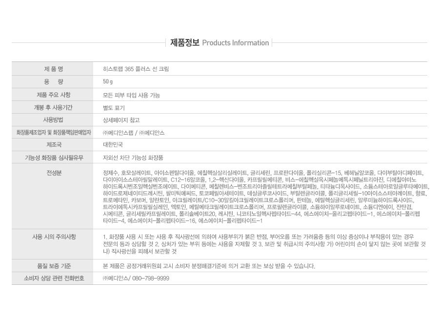 - HOME > 병원전용 > 히스토랩 > Derma Science > [히스토랩] 365 플러스 선 크림 50ml