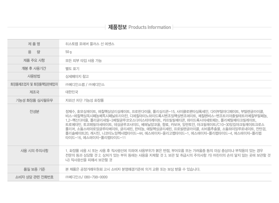 - HOME > 병원전용 > 히스토랩 > Derma Science > [히스토랩] 포에버 플러스 선 에센스 50ml